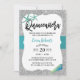 Quinceanera Turquoise Beach Starfish Modern Silver Glitter Invitations.