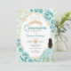 Turquoise gold Quinceanera celebration invitation. Features brunette girl in ball gown dress, script font, gold butterflies, watercolor roses and tiara. Perfect for an elegant princess style glam celebration. Personalise with your own details. Printed Zazzle invitations or instant download digital printable template.
