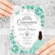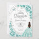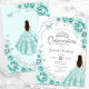 Quinceanera Turquoise Silver Dress Floral Invitation