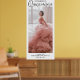 Welcome guests to a 15th birthday celebration with a large vertical photo 24"x58" Quinceañera poster. The picture and wording on this sign template are simple to customize. The colors and font styles are easy to change with the Zazzle Design Editor tool. The modern minimalist black and white design features an elegant gold faux foil princess crown, trendy script calligraphy, stylish classic typography, and one photo of your choice. This Quinceañera welcome sign adds a unique finishing touch to a teen girl's Mis Quince Años party decorations and says thank you to guests for coming. Feliz Cumpleaños quinceanera! Happy fifteenth birthday!