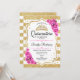 Features stripes, script font, pastel pink roses, tiara and confetti. Classy blush pink design with faux glitter gold. Perfect for an elegant glam celebration.