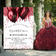 For an elegant Quinceañera, 15th birthday. A stylish white background. Decorated with red faux glitter and balloons. Personalise and add a name, age and party details. The name is written with a hand lettered style script