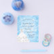 For an elegant Quinceañera, 15th birthday. A blue snowflake background. Decorated with a white dress for a winter wonderland themed party. Personalise and add a name, age and party details. The name is written with a hand lettered style script