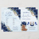 Celebrate tradition with this budget-friendly Charro Quinceañera program, featuring vibrant royal blue flowers, gold accents, horse silhouettes, and cowboy boots adorned with florals. A subtle horseshoe adds rustic charm to this foldable bi-fold paper sheet, which includes your padrinos list, order of events, corte de honour - damas and chambelanes—all in one elegant design.