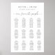 This seating chart poster features a modern minimalist design and 12 tables layout. The script text heading is an image that cannot be edited. The heading image can be resized to fit any poster size. All of the other text is fully editable. For more advanced customisation of this design, simply select the "Customise It" button above.