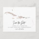 This travel themed save the date postcard features a blush Caribbean map and postcard backing. Easily change the colors and move the heart around to highlight your destination. Edit *most* wording to match your needs and easily add a special message to the backside of the invitation.