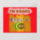 This artwork features a cheerful cartoon bee positioned in front of a series of red, vertical shapes that resemble wooden fence boards. The phrases "I'M BOARD" and "I MISS YOU" are cleverly integrated into the design. "I'M BOARD" is humorously placed above the fence, while "I MISS YOU" is positioned behind the bee, suggesting that the bee is expressing this sentiment.