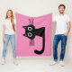 Quirky Black Kitty Cat Purrfect Pink Fleece Blanket