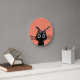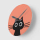 Quirky Black Kitty Cat with Long Whiskers Round Clock