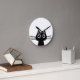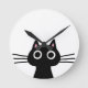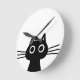 Quirky Black Kitty Cat with Long Whiskers Round Clock