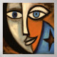 With its bold lines and vivid colour palette, this piece invites viewers to explore a world where the rules of traditional portraiture are joyfully bent and reimagined. The asymmetrical arrangement of facial features is both a nod to the cubist masters and a whimsical interpretation that challenges and delights the observer.