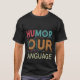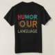 Indulge in the universal language of laughter with our "Quirky Conversations" Basic Dark T-Shirt. Against a sleek, dark backdrop, vibrant typography boldly declares "Humour Our Language," inviting all to embrace the joy of wit and levity. Accompanied by a whimsical illustration, this design serves as a delightful reminder that laughter knows no boundaries. Wear it proudly and spark laughter wherever you go, because in a world of diverse tongues, humour unites us all.