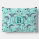 Quirky Cool Striped Blue Flamingo Pattern Monogram Accessory Pouch