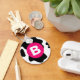 Quirky cool black and white cow spots pattern with bold hot pink monogram.