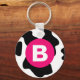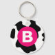 Quirky Cow Patch Pattern Pink Monogram Key Ring