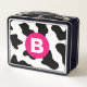 Quirky Cow Patch Pattern Pink Monogram Metal Lunch Box