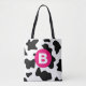 Quirky Cow Patch Pattern Pink Monogram Tote Bag