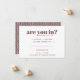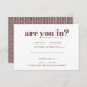 This adorably quirky wedding RSVP features a minimalist typography composition with sassy, modern wording. A perfect design for a couple who loves to show their humourous side! Add your custom wording to this design by using the "Edit this design template" boxes on the right hand side of the item, or click the blue "Customise it" button to arrange the text, change the fonts and colours and to also add additional information or images to this design. If you need any coordinating items, (thank you cards, etc.) please contact me for a custom order.