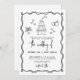 This unique and whimsical wedding invitation is perfect for couples looking to add a playful, creative touch to their big day. Designed in classic black and white, it has the charm of a hand-doodled masterpiece, as if lovingly sketched with handwritten notes. The centerpiece of the design is a wavy frame tied with a sweet little bow at the top, encasing your wedding details in a mix of script and handwritten-style fonts for a fun and personal feel.