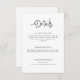 Quirky and whimsical handwritten wedding details card in a neutral colour scheme of black and white.