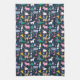 Quirky Holiday Animals and Icons Pattern Tea Towel
