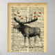 Quirky Moose Apples Antique Dictionary Page Art Poster