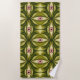 Quirky Pink Eyes And Green Botanicals Pattern Beach Towel