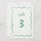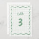 The table number card is downloadable and comes in a neutral colour scheme of sage green on a soft green gingham patterned background.