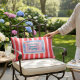 Brighten up your outdoor living area with this fun and eye-catching throw pillow. It showcases a charming vintage-style illustration of a sardines can, complete with two playful fish, set against a vibrant background of alternating red and pink stripes. This design brings a unique retro vibe and a splash of color to your patio, deck, or garden furniture. It’s a delightful way to express your personality and add a touch of quirky decor to your outdoor oasis. Made for durability and style, this pillow is sure to be a favorite.