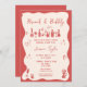 Unique Quirky lobster red whimsical Hand Drawn Contemporary Retro French Fun Invitation with a bow frame, a whimsical trendy artwork for your french wedding by Savanamm and "that's amore" text