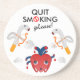 Quit smoking, please. No matter how old you are or how long you’ve smoked, quitting can help you live longer and be healthier. To quit tobacco is a hard challenge. But it’s something every smoker should try at least once. If you tried to quit and succeeded, you can advocate for tobacco cessation with these products. You can use this product to spread the message around. Maybe it will help someone start a conversation with you about your experience. Maybe you can inspire someone, a complete stranger. Or maybe you want o to ask someone to quit smoking and don't know how. A simple gift might do the trick. Then, the person, a relative, a friend, a co-worker, or a fellow student must embrace the journey! You know, I know, quitting smoking is hard but it's a life-changing decision. This cartoon represents just one of the most popular and primary risk factors for heart disease: smoking cigarettes can permanently damage your heart and blood vessels. A nasty cigarette is armed with a bow and arrow. The impotent heart looks very distressed by the cigarette threat. We must help the poor heart, don't you think?