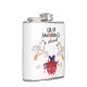 The flask itself is fine. It’s a cheap flask, obviously bought in bulk, however am prepared to overlook that. Given that it is a personalized item, I would have liked to have seen gift boxing instead of the generic packaging. Terrible printing, and/or quality. It’s a cheap, tacky vinyl. It is not cut straight and is also applied in a way that it is overhanging the bottom, causing the glue to catch on items and it will eventually roll and tear, damaging the wrap.
