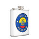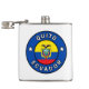 The flask itself is fine. It’s a cheap flask, obviously bought in bulk, however am prepared to overlook that. Given that it is a personalized item, I would have liked to have seen gift boxing instead of the generic packaging. Terrible printing, and/or quality. It’s a cheap, tacky vinyl. It is not cut straight and is also applied in a way that it is overhanging the bottom, causing the glue to catch on items and it will eventually roll and tear, damaging the wrap.