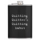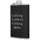 The flask itself is fine. It’s a cheap flask, obviously bought in bulk, however am prepared to overlook that. Given that it is a personalized item, I would have liked to have seen gift boxing instead of the generic packaging. Terrible printing, and/or quality. It’s a cheap, tacky vinyl. It is not cut straight and is also applied in a way that it is overhanging the bottom, causing the glue to catch on items and it will eventually roll and tear, damaging the wrap.