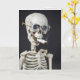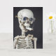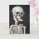 Skeleton wearing glasses and smoking a cigarette butt on black for quitting smoking congrats.
