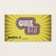 Quiz night trivia party raffle ticket. With big bold typography surrounded by dressing room lights. The background is a yellow sunburst pattern.