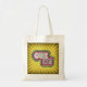 Quiz night trivia party tote bag. With big bold typography surrounded by dressing room lights. The background is a yellow sunburst pattern.