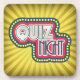 Quiz night trivia party coasters. With big bold typography surrounded by dressing room lights. The background is a yellow sunburst pattern.