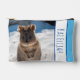 A unique accessory pouch with a photo of a very cute and happy quokka on the beach! Perfect for any boy. Customise / personalise it with your own name or the name of the person you gift it to! This will definitely brighten up your day! If you’re ever lucky enough to meet a Quokka, the happiest animal in the world, chances are you’ll break out in a grin. This popular marsupial is synonymous with Perth’s favourite holiday spot, Rottnest Island – a short ferry ride from the Western Australian port of Fremantle. In fact, it’s how the island got its name – Dutch explorer Willem de Vlamingh named it ‘Rotte Nest’ (‘rats’ nest’) in 1696, mistaking the ubiquitous small macropods (the kangaroo and wallaby family) on the beautiful Mediterranean-like island as giant rats. Of course the traditional owners of Rottnest Island, the Whadjuk Noongar people, knew of the island long before any European connection. They call it Wadjemup, which means ‘place across the water where the spirits are’. Rottnest wasn't always an island. Noongar people used to walk there during the last ice age around 6,500 years ago when lower sea levels meant it was connected to the mainland. For them it was an important place to meet and conduct ceremonies. Around 10,000 Quokkas live on Rottnest Island today. Very small populations also survive in the mainland’s south-west forests such as those near Northcliffe. Overall the species is listed as vulnerable due to predation by feral animals (cats and foxes), altered fire patterns and habitat loss.