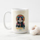 Available in two stylish background options—cream for a soft, cosy morning vibe or navy for a bold, vibrant statement—this mug is as versatile as it is fun. The intricate illustration of a Renaissance figure enjoying a cup of coffee adds a touch of elegance, while the warm gold and muted tones create a timeless aesthetic.