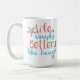 Starfish and quote "Life Is Simply Better At The Beach" coffee mug. Perfect for the beach, lake or cottage home. Add to the decor at beach and vacation rental properties. Or, just perfect for all of those who just love the beach. Design by Jenn's Emporium.