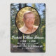 Personalize a funeral program with the photo of the deceased loved one. The background features a peaceful pine tree forest. The quote, "Life is eternal, and love is immortal, and death is only a horizon; and a horizon is nothing save the limit of our sight," by Rossiter Worthington Raymond is on the front below the photo, name and years of life. On the back is room for the order of services for the funeral, the list of pallbearers, and another quote, "Like a bird singing in the rain, let grateful memories survive in time of sorrow," by Robert Louis Stevenson. Photos and text are set up to be personalized with your own photos and text. If you need help customizing, please contact me at jen@jenaleefamilystorykeeper.com