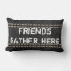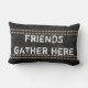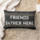 This quote pillow rustic chic style in grey and white has typography design with saying friends gather here for home decor.
