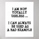 I AM NOT TOTALLY USELESS I CAN ALWAYS BE USED AS A BAD EXAMPLE funny quote poster