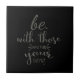 Quote Be With Those Who Help Your Being Ceramic Tile from Simple Living. Grey typography on black. Design is available on a variety of products.