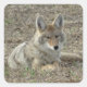 Coyote Laying Sticker. A young coyote relaxes after a morning of chasing mice on the short grass prairies of southern Alberta.