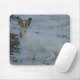 Snowshoe Hare Mouse Pad. This photo shows a snowshoe hare in its white winter coat that is perfect camouflage if there is snow, sometimes the chinook winds melt the snow leaving these hares quite exposed.