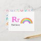 "Letter R is for Rainbow" in our Alphabet Flash Card set. Get all 26 letters of the alphabet! A double-sided postcard that is great for memory games and teaching, geared for education, schools, teachers and homeschoolers for kindergarten and babies. All text is editable if you need to customise.