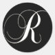 R monogram with a black background, white script initial and silver border. Perfect sticker for your wedding envelopes, gift bags, or other decor for your elegant wedding.
