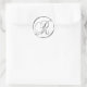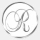 R Monogram Faux Silver Envelope Or Favour Seal. These classic round stickers are printed with non metallic ink on a flat sticker to look like silver. They are not beveled or embossed monograms but are designed to look like they are beveled or embossed monograms. These silver monogram seals are printed on a white background unless you select a different colour background before you proceed to checkout. In addition to being pretty wedding stationery supplies, these elegant wedding invitation envelope seals also make great monogrammed custom Christmas card seals, personalised holiday greeting card envelope seal stickers and customised Xmas card monogram seal stickers.